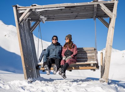 A glance at the elevation profile of Genussrunde (“delightful loop”) reveals that the trail is aptly named. Along the approximately 800-meter route through the glistening winter landscape of Skigastein, you only have to cover 30 meters of elevation gain. With a duration of 30 minutes, the winter hike is ideal for anyone looking for a brief excursion into nature to clear their head and enjoy magnificent scenic views.