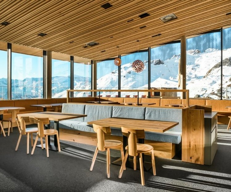 Welcome to Restaurant Hirsch and Maus, the newest gem on the Schlossalm. Modern design meets alpine coziness, combined with a breathtaking panoramic view of the Hohe Tauern that makes every visit truly unforgettable. Whether enjoying sunshine on the terrace or relaxing in the cozy indoor area, guests can experience culinary delights in a unique mountain setting.