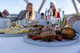 Mit der Goldbergbahn geht es komfortabel zur Bergstation auf bis 2.650 Höhenmeter. Bei der Bergstation angekommen wandert man in ortskundiger Begleitung zum Gipfelkreuz des Kreuzkogels auf 2.686 Meter, um den spektakulären Ausblick auf über 400 Berggipfel zu genießen. Das Gourmetfrühstück lockt in die legendäre Glas-Aluminium-Kuppel von dem bekannten Architekten und Designer Gerhard Garstenauer. Die Bauart der visionären Kuppel ermöglicht einen 360 Grad-Panoramablick auf die faszinierende Bergwelt des Nationalpark Hohe Tauern. Ein eindrucksvoller Ausblick und frisch zubereitete regionale Speisen sind die Zutaten für ein unvergessliches Gipfelfrühstück.